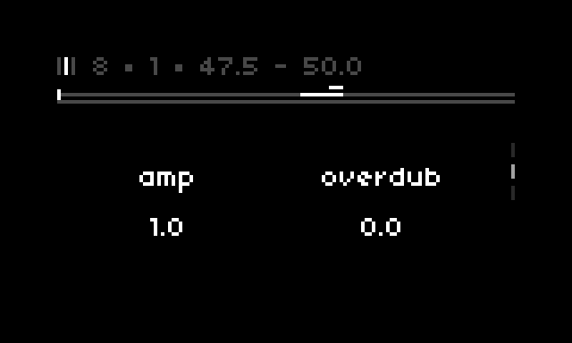 The tape functionality is meant for playing, recording, and sequencing slices from a partition of the stereo softcut buffer(s). There are four such partitions: each one is 80 seconds long1, and each partition is divided into 32 slices. By default, these slices are evenly distributed, so they start at 2.5 seconds long, but the user can adjust the start/stop positions for each slice. There are 4 tracks, each one with access to the four partitions.